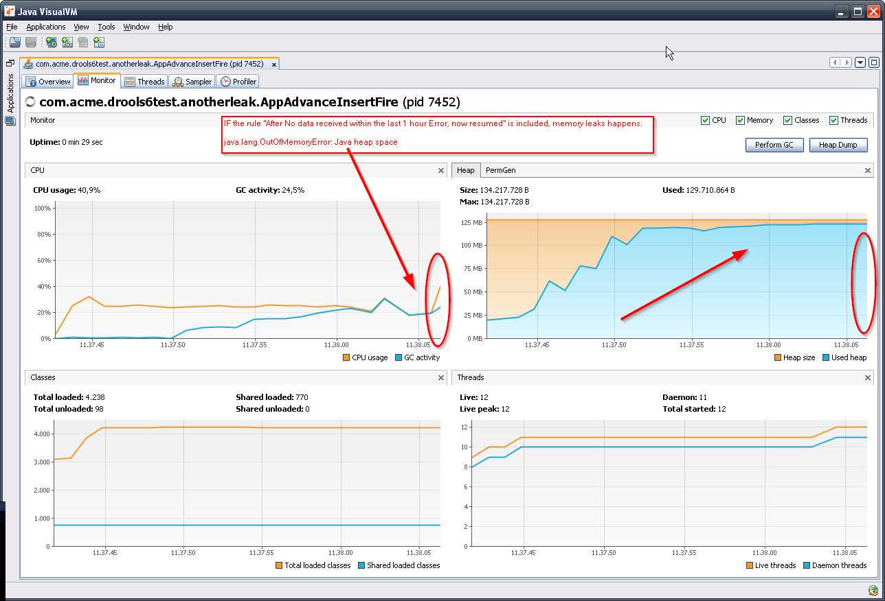 pattern inducing memory leaks. I try to attach rule, screenshots,