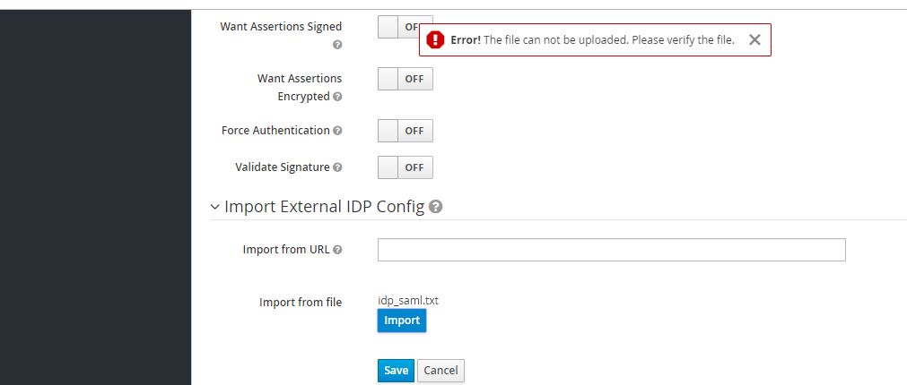 I am trying to import SAML metadata while creating the Identity provider in
